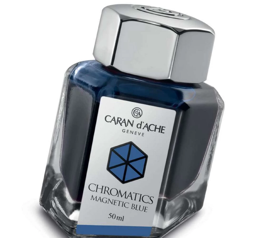 Caran d’Ache uses its special savoir-faire to offer lovers of handwriting a collection of ink bottles with 12 colours inspired by the prism. From ultramarine blue to luxuriant green, from shimmering orange to passionate red, they give the words a soul and the text a uniquely vibrant style. Caran d’Ache inks show their pedigree in a box that is worthy of presenting their intense colours: the glass bottles adopt the shape of a prism, playing with the reflections of the light and enriching the colours they contain.