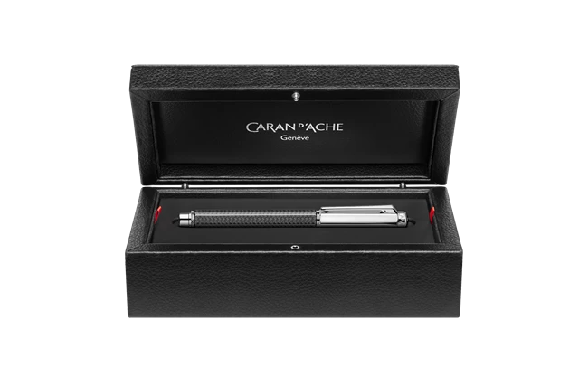 Carbon fibre. Its lightness and strength provides outstanding technical excellence. This high-tech material gives Varius Carbon its power and rigidity in perfect harmony with its silver-plated, rhodium-coated, finish. Fountain pen nibs in 18 carat gold, rhodium-coated available in six different widths. Piston ink pump or Caran d’Ache ink cartridges. The Varius Carbon fountain pen perfectly satisfies your writing comfort requirements.