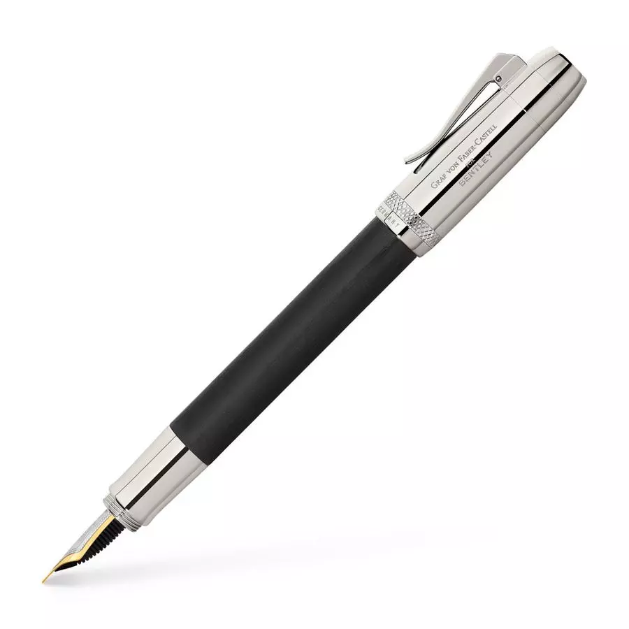 Fountain Pen Bentley Ebony Medium A passion for unrivaled craftsmanship and unmistakable design unite British luxury car brand Bentley and fine writing instrument manufacturer Graf von Faber-Castell. A collaboration of both brands, this new collection of writing instruments combines Bentley’s legendary spirit with the elegance of Graf von Faber-Castell for a writing experience beyond compare: Shape your journey.