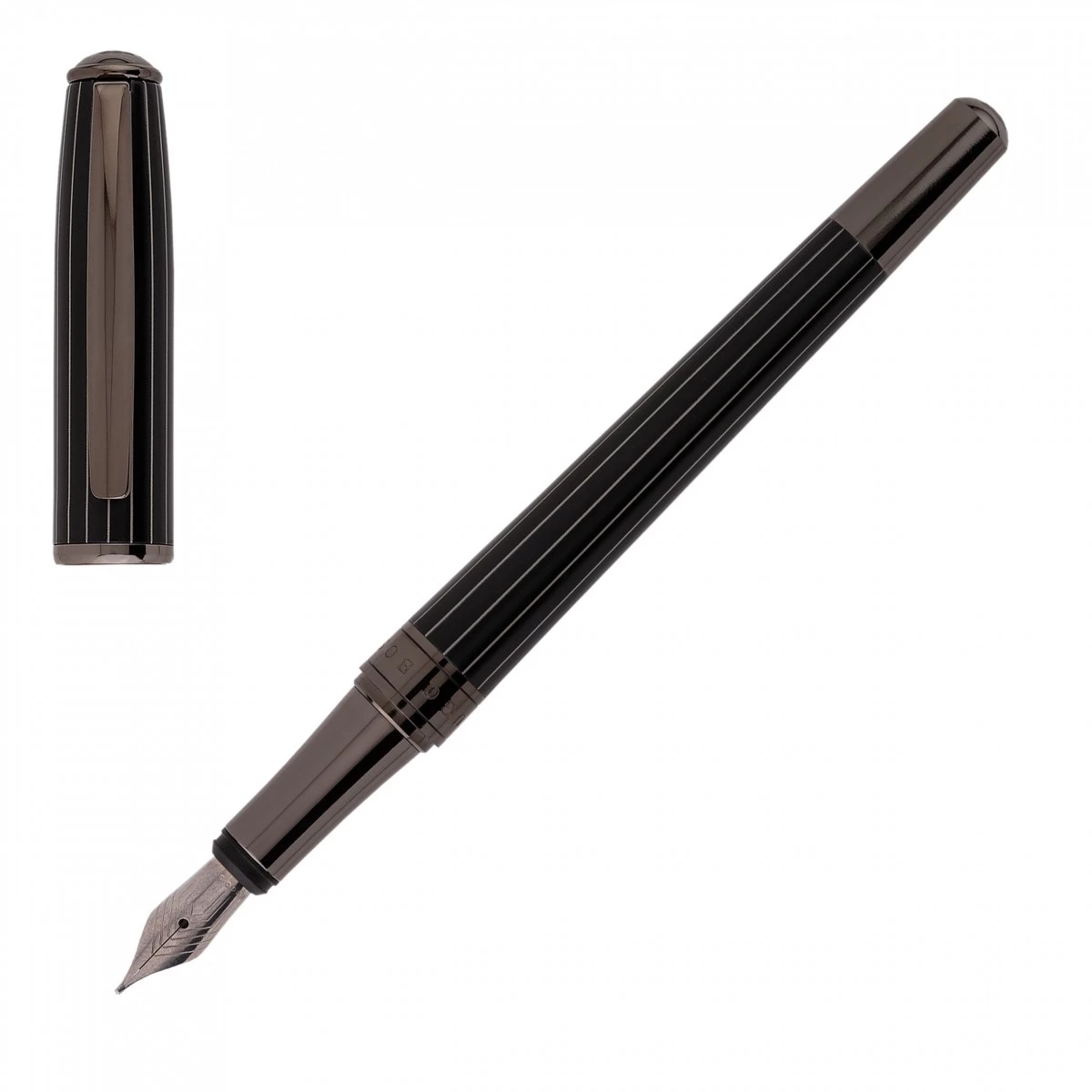 The Essential pen is reinterpreted in a pinstripe-printed, dark, masculine version, referencing HUGO BOSS’s background in fine tailoring. With its timeless shape, this elegant and elevated new version speaks of a desire for excellence. This item is available in fountain, roller and ballpoint pen.
